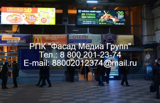 РПК «Фасад Медиа Групп» разместило рекламу для нашего клиента на лайтбоксах, расположенных на автовокзале. Реклама ориентирована на уезжающих горожан, которые ожидают свой автобус. Макет разработан дизайнерами нашей компании. Печать и монтаж были осуществлены за 2 рабочих дня