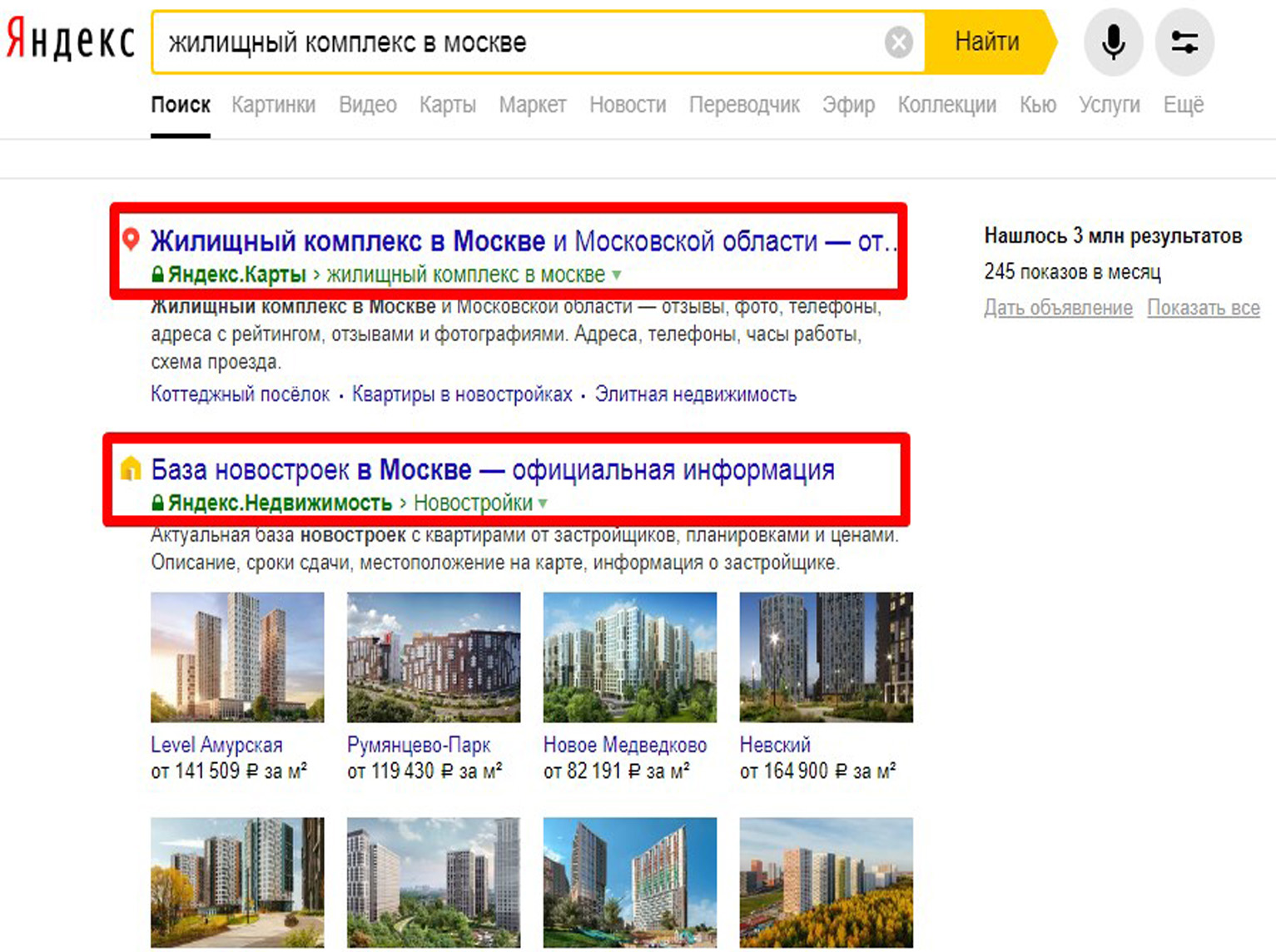 Пример навигационной рекламы в Яндексе представлен ниже: